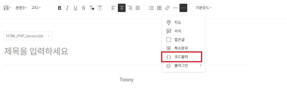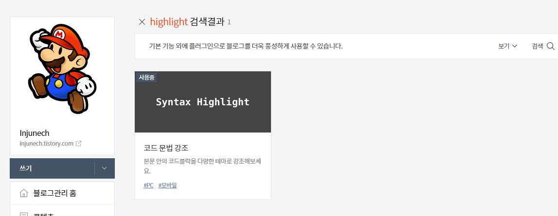 TISTORY 에 추가된 새로운 플러그인 Code HighLight 코드 문법 보기