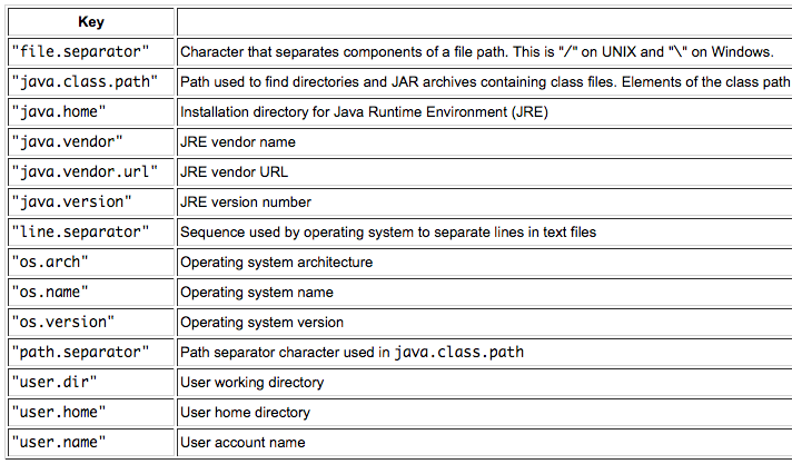 자바로, 현재 운영체제 종류 등의 각종 시스템 속성을 구하는 방법입니다. getProperty() 메소드(함수)에, 구하고자 하는 속성의 이름을 문자열로서 지정하면 됩니다.