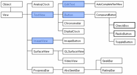 그림에서 보이듯이 ImageView, TextView, EditText, Button 모두 뷰(View) 클래스를 상속받고 있다.