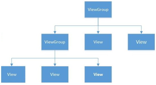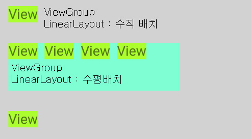 그림에서 보이듯이 뷰그룹(ViewGroup)은 뷰(View)만 배치가능하며