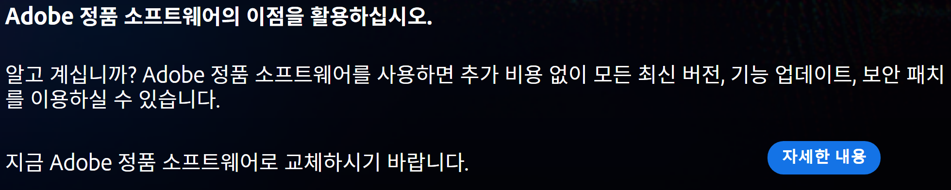 Adobe 정품 소프트웨어 팝업창 제거