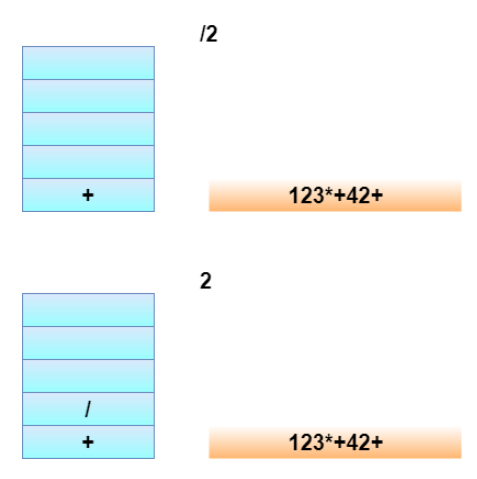 그 결과 123*+42+2/+ 와 같이 후위수식으로 변경이 완성 됩니다.