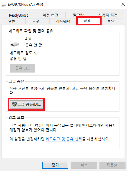 암호로 보호된 공유 > 암호 보호 공유 켜기