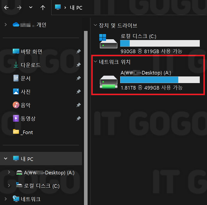 > 네트워크 드라이브 설정 방법 참고: https://injunech.tistory.com/414