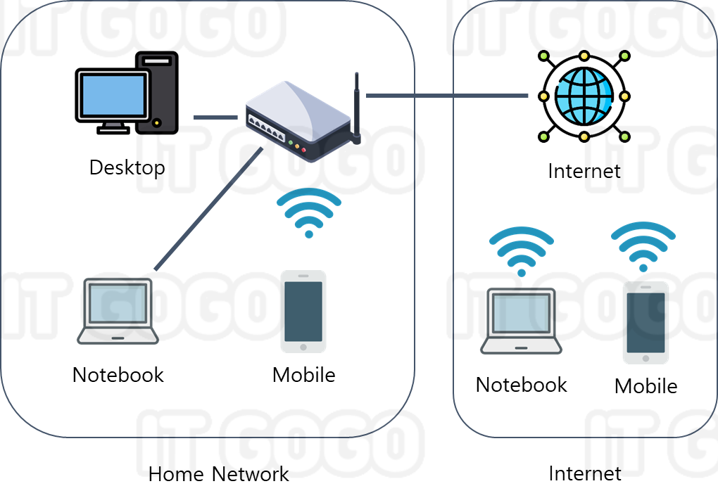 MyCloud 서비스로 위와 같은 네트워크 환경에서 Desktop의 공유폴더를 이용한 동기화 환경을 만들어 보기로 한다.