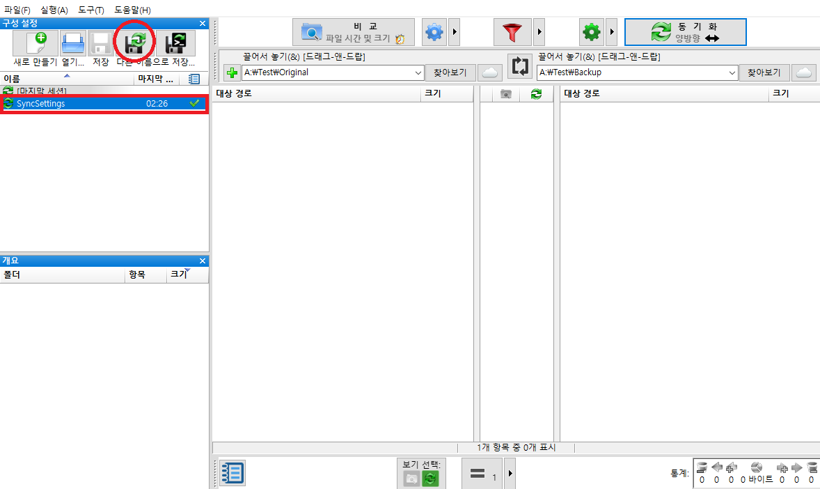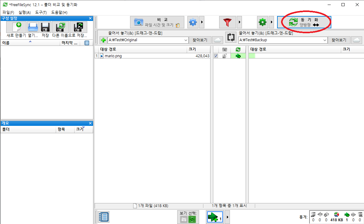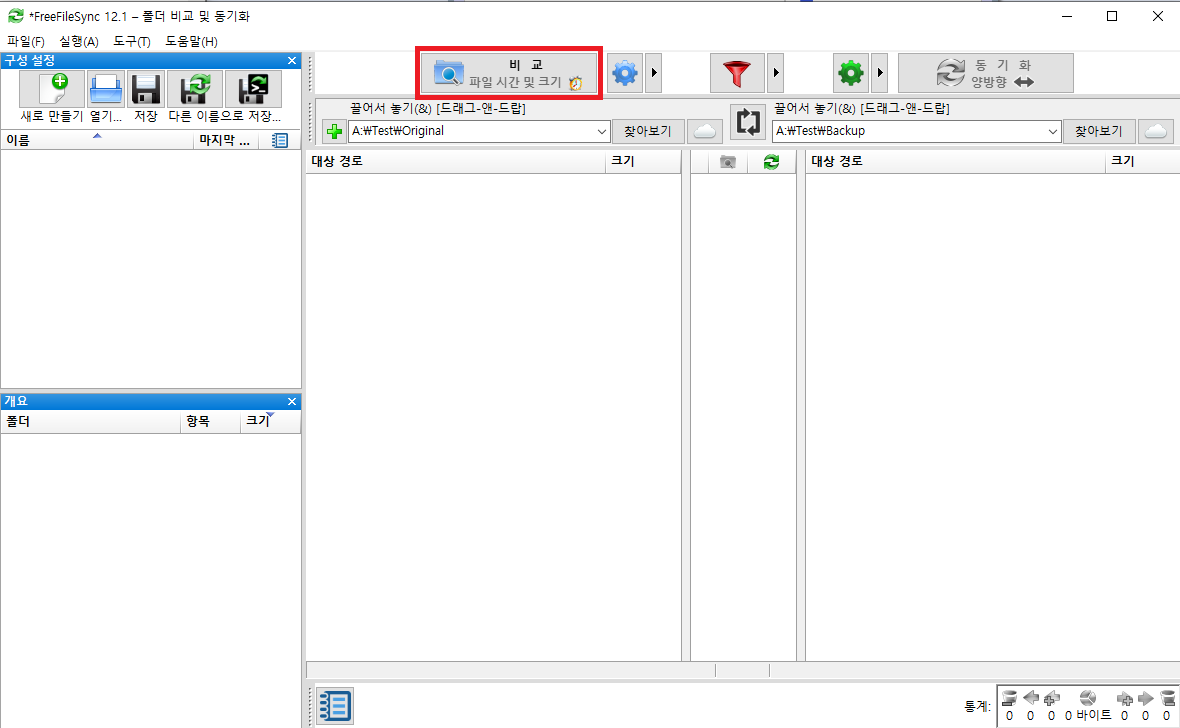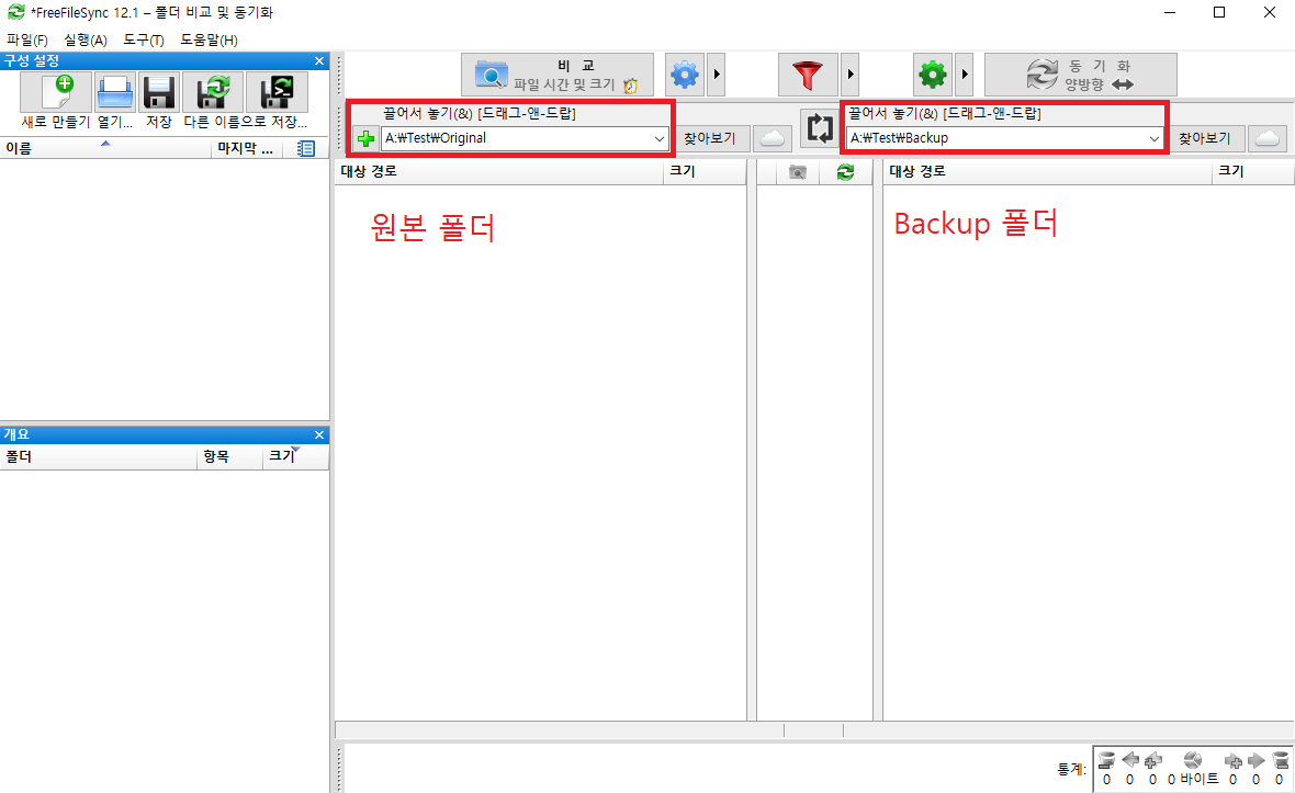 왼쪽은 원본 폴더, 오른쪽은 백업용 폴더로 지정한다.
