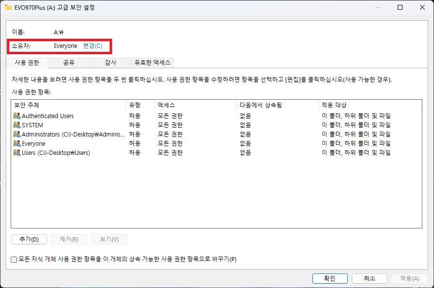 [Windows] 폴더 읽기 전용 설정 변경되지 않을때